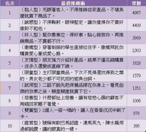 [分享] (08-24) 十大顧人怨推銷排行榜