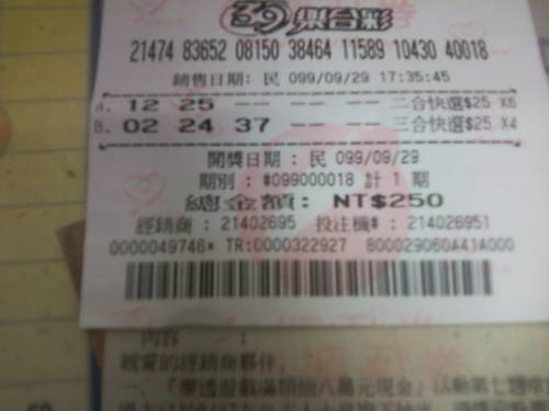 加幣原因:開 02 14 24 34 37 第二注電選中