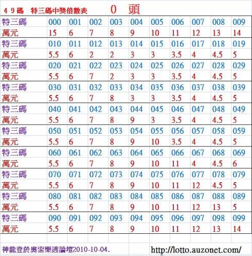 加幣原因:0 頭 特 三 尾 000 ~ 099 倍 數 表 !
