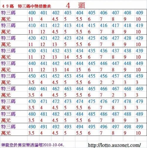 加幣原因:4 頭 特 三 尾 400 ~ 499 倍 數 表 !