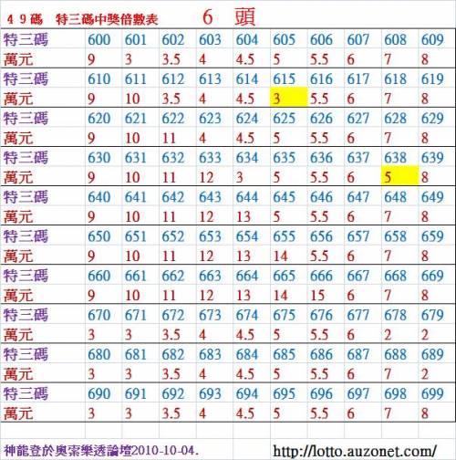 加幣原因:6 頭 特 三 尾 600 ~ 699 倍 數 表 !