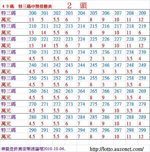 加幣原因:2 頭 特 三 尾 200 ~ 299 倍 數 表 !