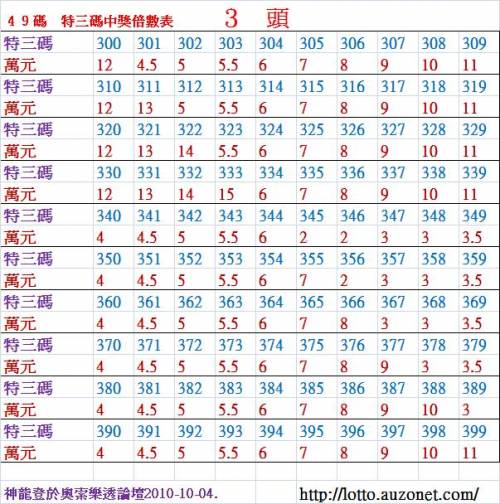 加幣原因:3 頭 特 三 尾 300 ~ 399 倍 數 表 !