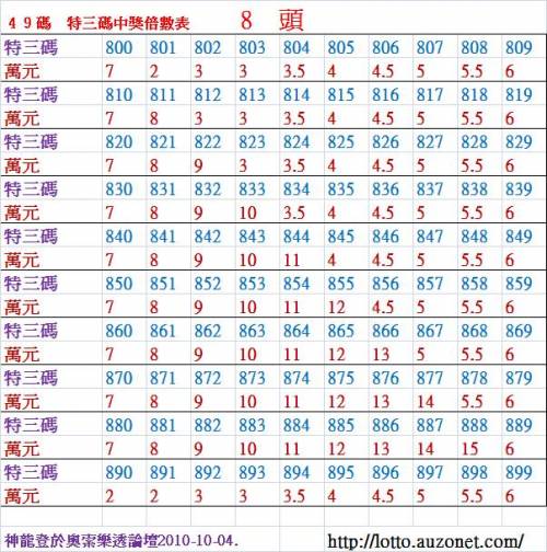 加幣原因:8 頭 特 三 尾 800 ~ 899 倍 數 表 !