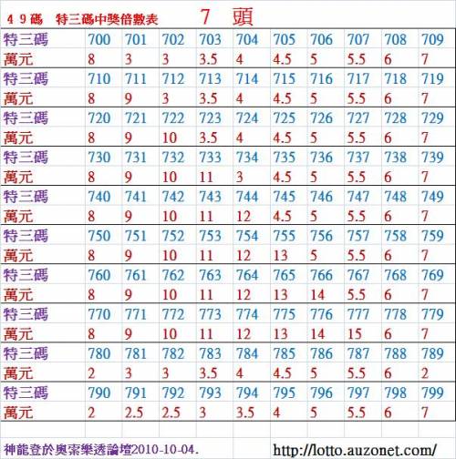 加幣原因:7 頭 特 三 尾 700 ~ 799 倍 數 表 !