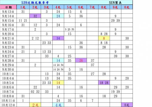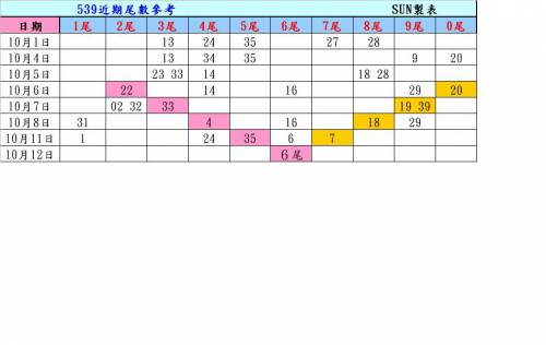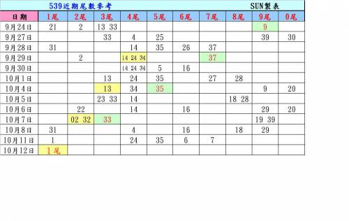 <<10/12>>539樂合彩尾數圖參考