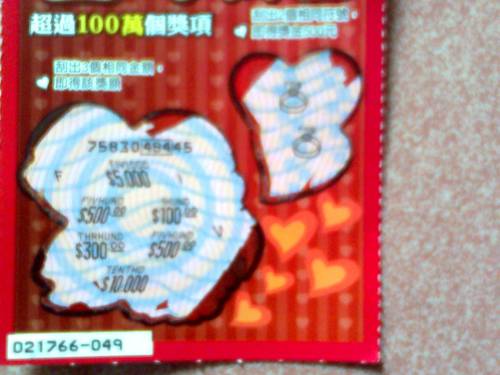 我今天休假買ㄋ一張百年好合刮刮樂中ㄋ500元