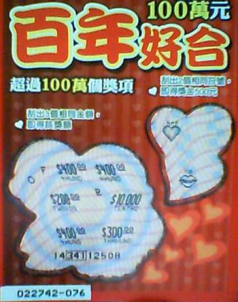 討論版列表 » 刮刮樂討論版 » [分享] (02-13) 百年好合.中400元!! 回應本話題 發表新話題