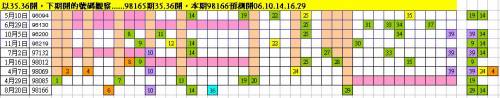 以35.36開,下期開的號碼觀察......98165期35.36開,本期98166預測開06.10.14.16.29