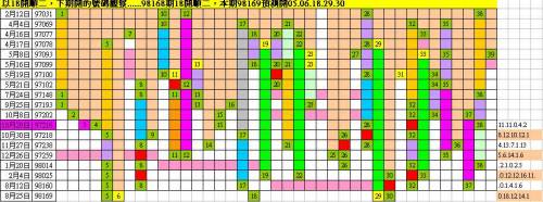 以18開順二,下期開的號碼觀察......98168期18開順二,本期98169預測開05.06.18.29.30