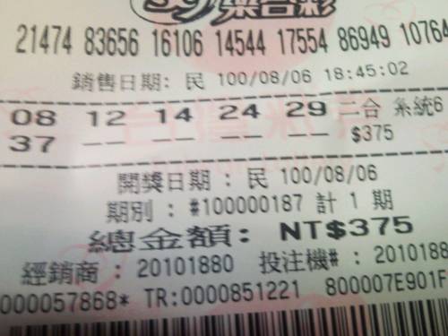 恭禧中獎,順利抱走彩金! 這位大大好厲害.有準