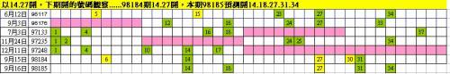 以14.27開,下期開的號碼觀察......98184期14.27開,本期98185預測開14.18.27.31.34