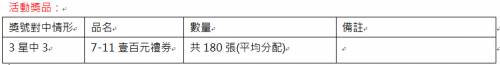 以此類推,若有2名會員開出3星中3,即2人平均分配價值$18,000的7-11壹百元禮