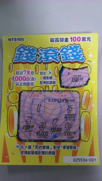 恭禧中獎,順利抱走彩金!