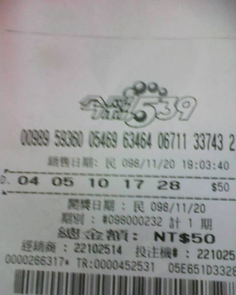 加幣原因:本期開 05 10 17 28 38 5中4 + 貼圖