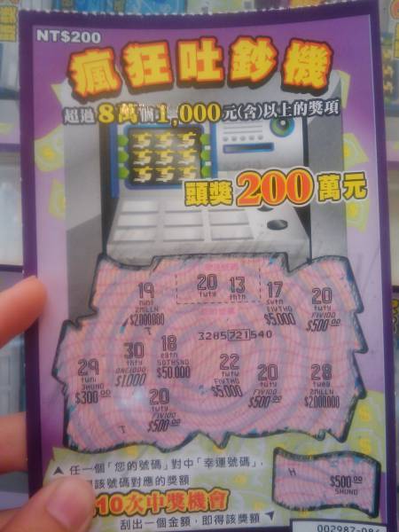 討論版列表 » 刮刮樂討論版 » [分享] (05-09) 剛出就刮到2000 瘋狂吐鈔機~