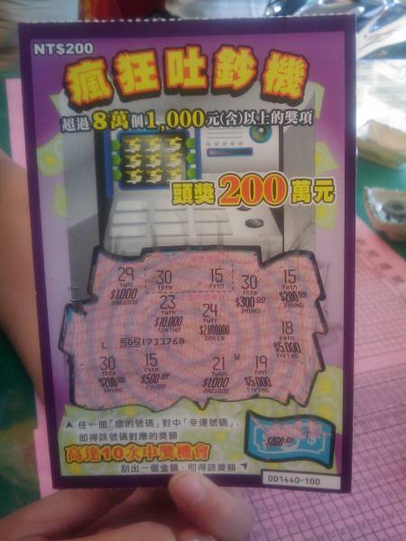 討論版列表 » 刮刮樂討論版 » [分享] (05-09) 隔天再刮到1200元 瘋狂吐鈔機啦~
