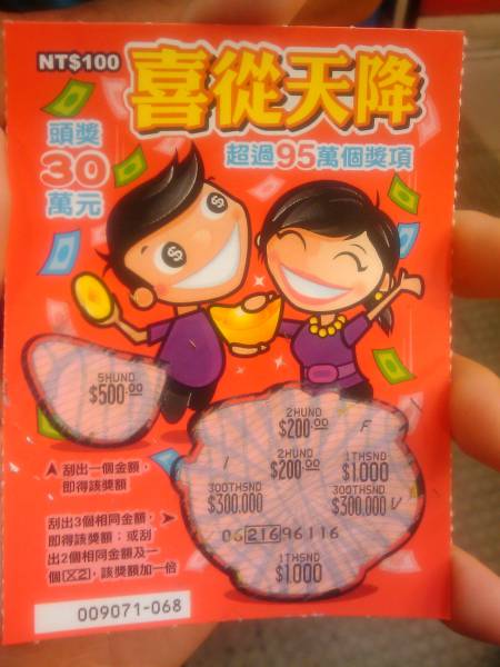 恭禧中獎,順利抱走彩金!
