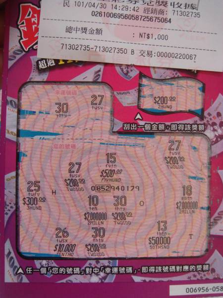 阿姨!妳天天都刮中.妳要刮到.台彩舉白旗.投降.加油!