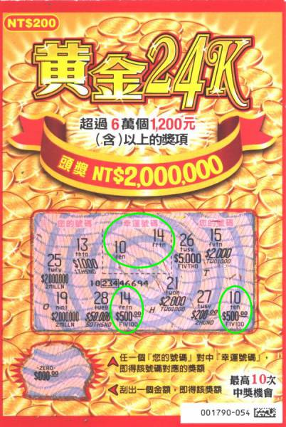 討論版列表 » 刮刮樂討論版 » [分享] (06-20) 運氣不錯~黃金24k中1000元!