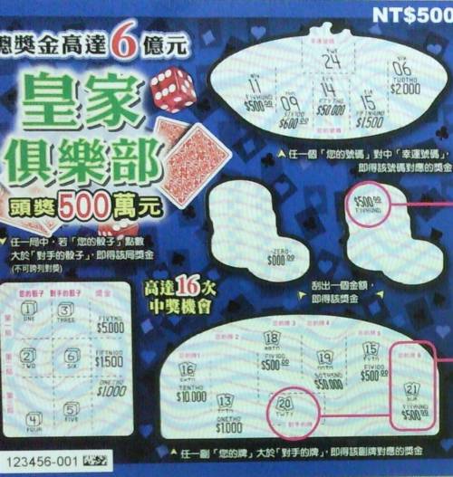 二、售價及包裝:「皇家俱樂部」每張新臺幣500元正、每本50張。