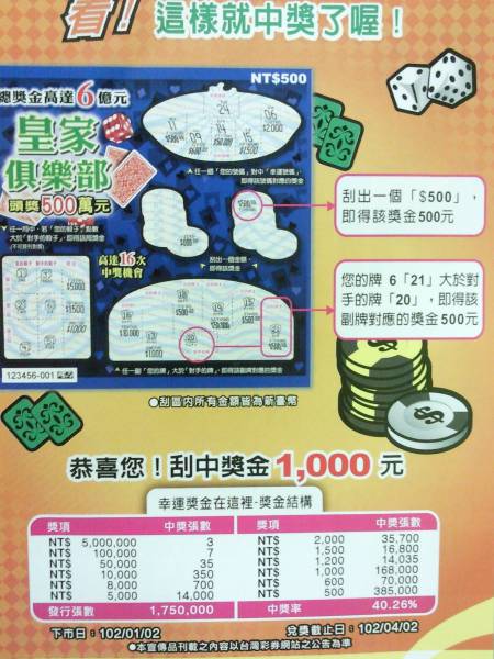 三、發行數量:「皇家俱樂部」總計1,750,000張。