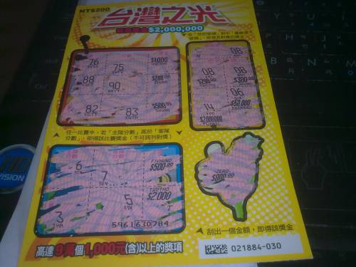 我昨天吃飯時,買ㄋ一張台灣之光中1500元