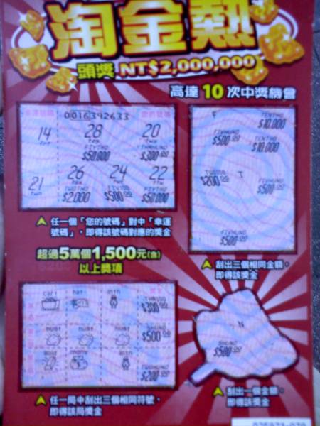 朋友狗屎運= = 一張就中 我今天賠400= =