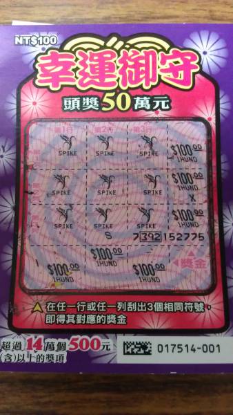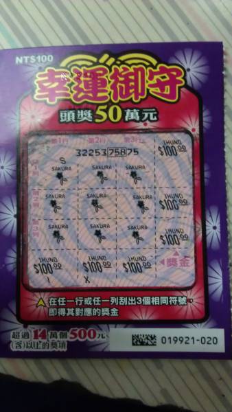 討論版列表 » 刮刮樂討論版 » [分享] (08-19) 幸福御守全壘打 回應本話題 發表新話題