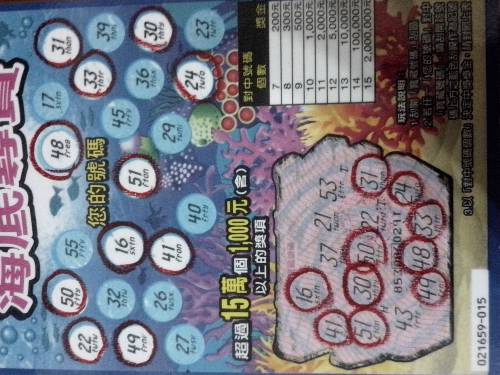 原來還有海底尋寶我以為都沒了,就又買了一張帶回家刮刮,結果中2000$真幸運,手氣不錯ㄝ
